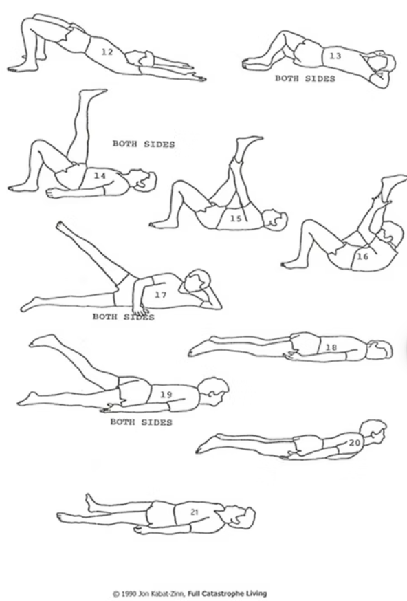 The following is a general outline of some movements in my practice and in sessions I do with others (elements of stretching, yoga, qigong, and tai chi). Sessions are typically 30-60 minutes depending on which movements are performed (my personal practice includes sun salutations. Elements of mindfulness as these are performed = breath awareness, body and posture awareness, presence/inner stillness, relaxation.