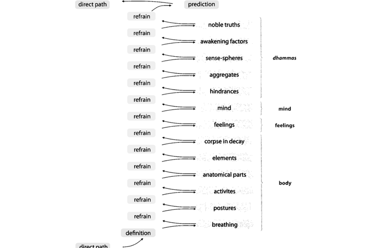 Highlights for mindfulness/ meditation/ contemplation and structure of the Sutta: